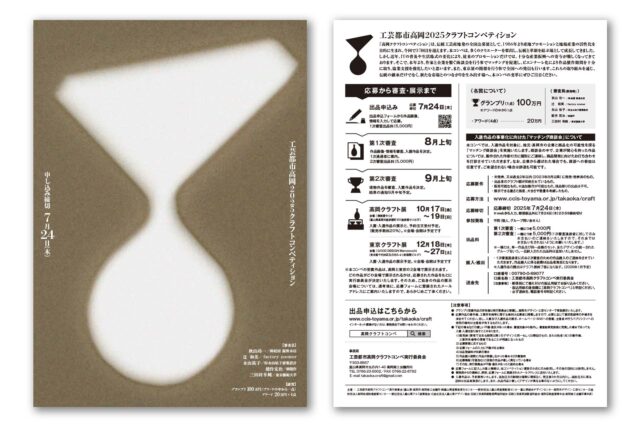 工芸都市高岡2025クラフトコンペティションの公募チラシが完成しましたのでご覧ください。 応募は作品募集ページの作品募集要項にあります「出品申込フォーム」のリン...