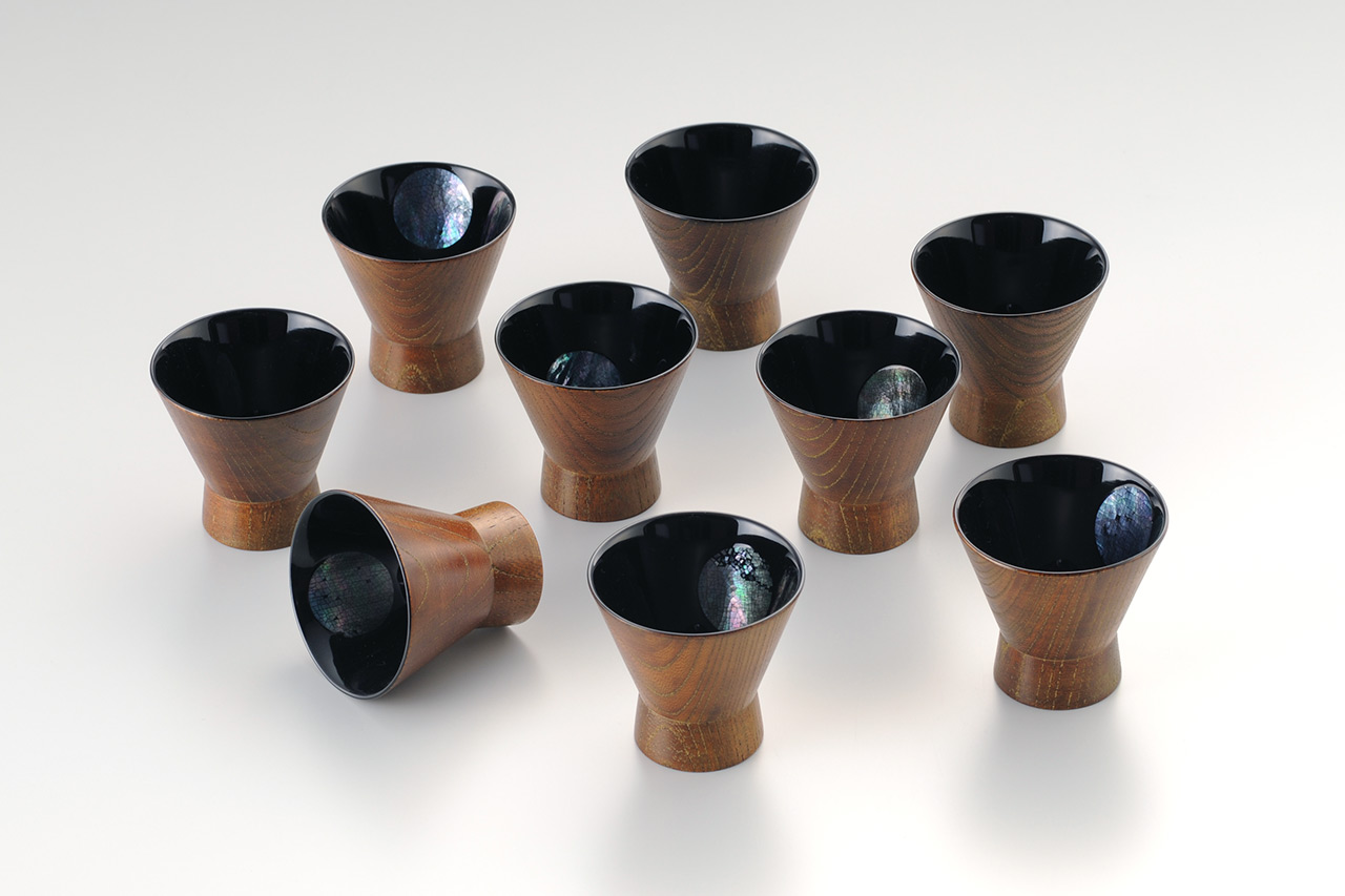 - 漆、けやき、和紙、白蝶貝、黒蝶貝、金消粉