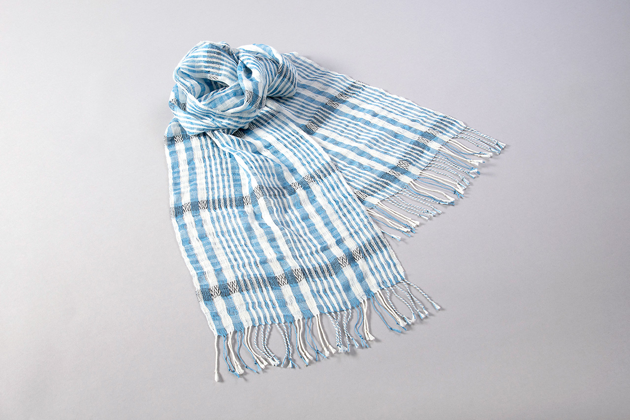 2021年 テキスタイル 透過(TOUKA) 麻糸60/1(青)、カシミヤコットン75/3(白)、麻糸20/2(紺、緯糸のみ) 196×30×0.1㎝ ¥12,000 滝田 公美 タキタ クミ 京都府 表示価格はすべて税込です。