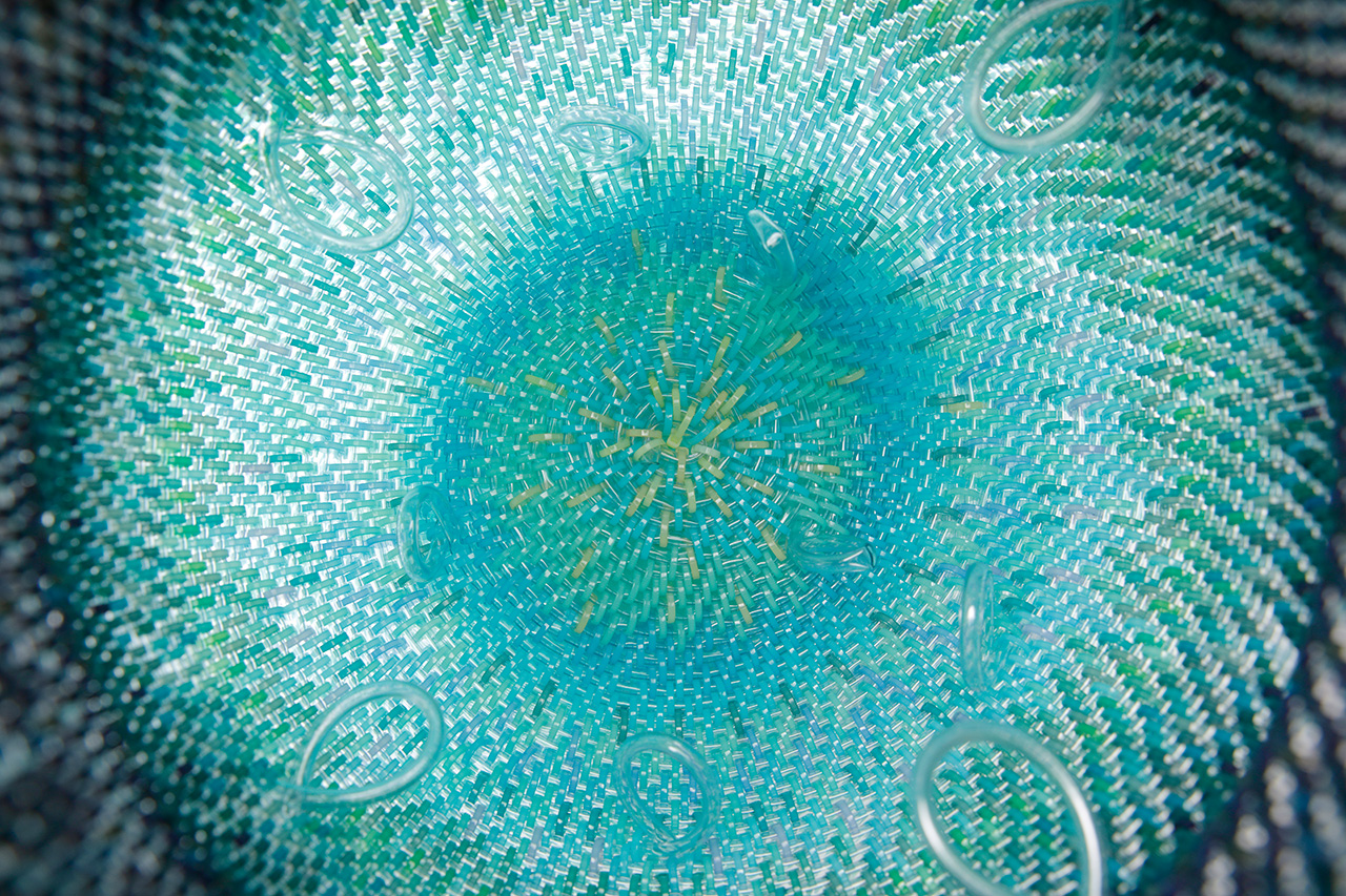 一次審査の写真選考の時点で眼を惹かれた作品が「Vase floating on the lake」でした。見た目のインパクトから近くで触ってみたいと思いました。また見た目だけでなくその制作プロセスも面白く、編み込みの素材にプラスチックチューブを使い、結束バンドを染色するなど昔から行われている手法を現代の素材に置き換え見事な作品に仕上がっています。独自の手法で作られる新しい形の次の展開がとても楽しみな作品です。