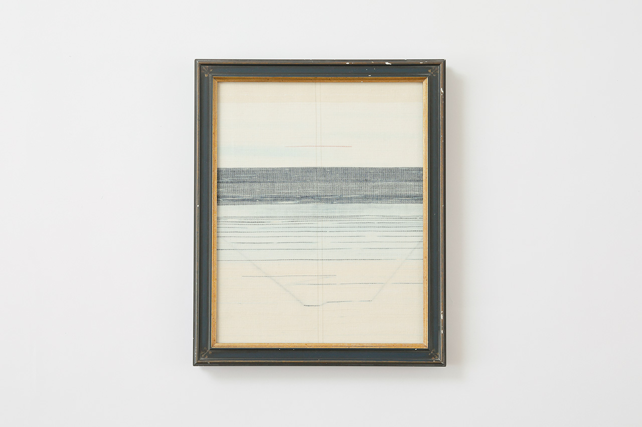 2022年 テキスタイル 水平線/山々 綿(無地、藍染絣、草木染め糸)、パステル、額 29×23.5×2.5㎝ ¥50,000 須藤 美咲 ストウ ミサキ 鳥取県 https://misakisuto.buyshop.jp/ 表示価格はすべて税込です。