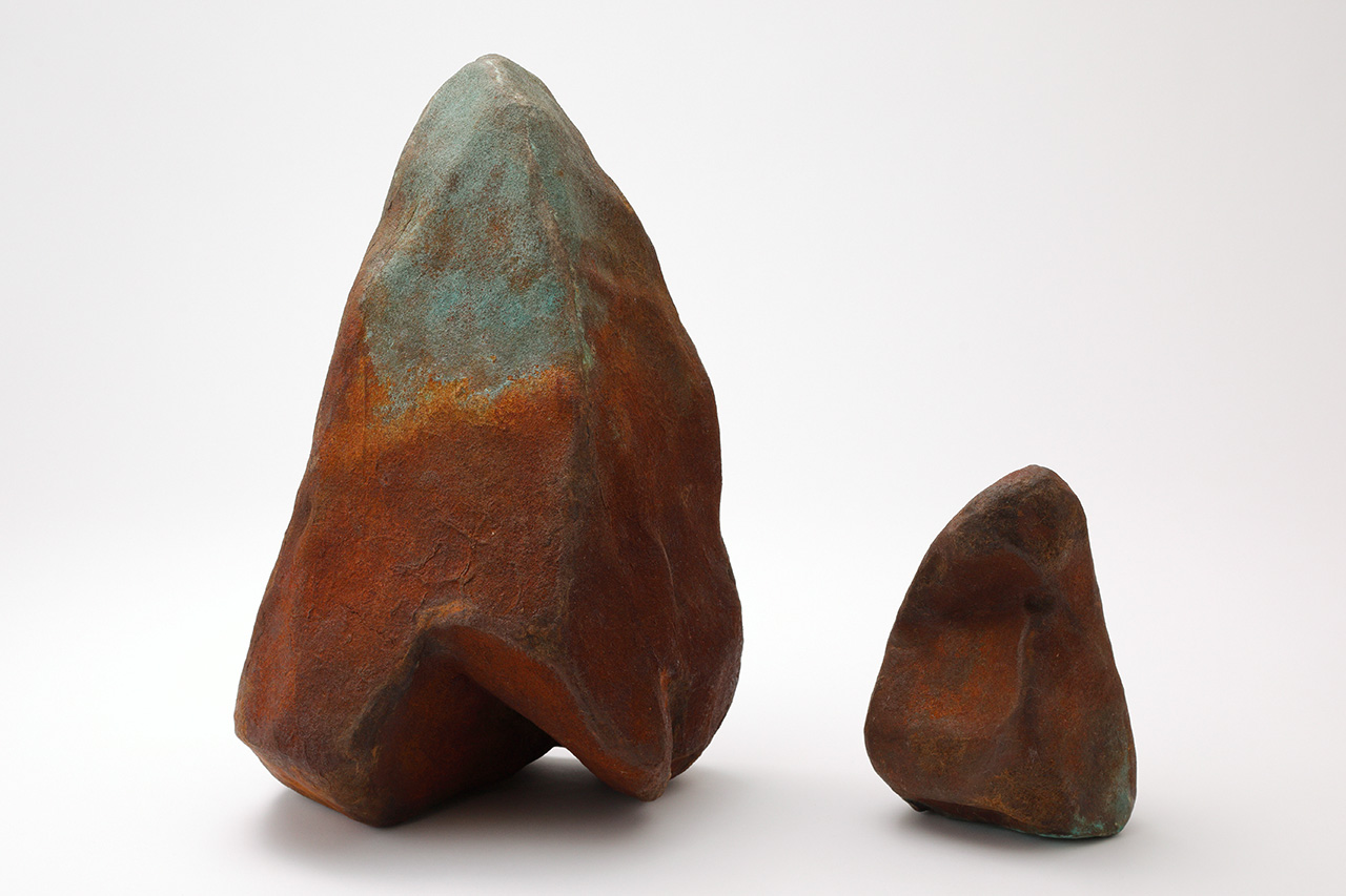 2022年 その他 Transfer/Stone Ⅲ 楮、石州和紙、鉄粉、砂鉄(折居海岸)、銅粉、柿渋、膠、澱粉糊、錆漆、漆 33×30×44.4㎝、15×15×27㎝ ¥297,000(2点セット) 伊藤 咲穂 イトウ サクホ 山梨県 表示価格はすべて税込です。