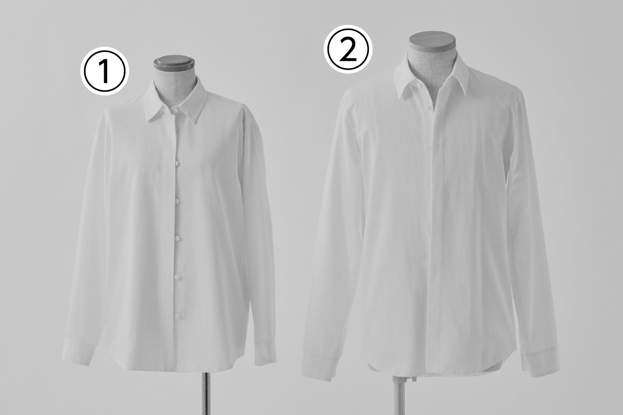 2023年 テキスタイル 綿100%のシャツ シャツ 綿 平置き:70×50×3㎝、トルソー:70×70×160㎝ ①レディース・②メンズ:各¥70,000 株式会社山田縫製工場 ヤマダホウセイコウジョウ 岐阜県 https://www.yamada-sf.store/ 表示価格はすべて税込です。