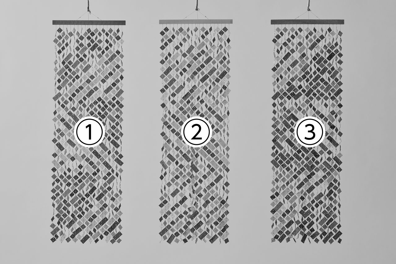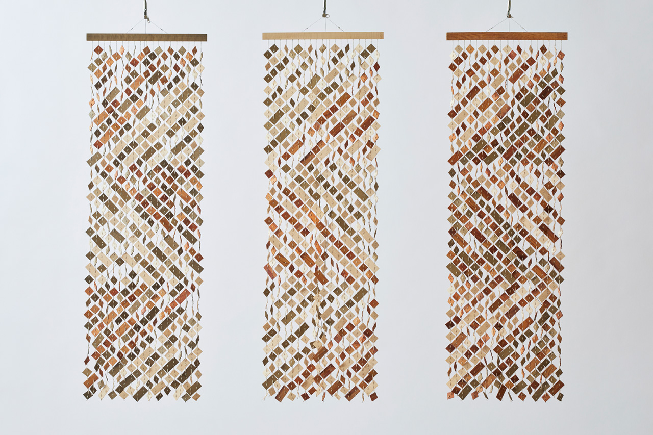 2023年 木工 モビール 秋 2023 栃、朴、屋久杉、麻糸 91×30×3㎝ ①・②・③:各¥30,000 3点セット:¥90,000 録澤 壽雄 ロクサワ トシオ 大阪府 表示価格はすべて税込です。