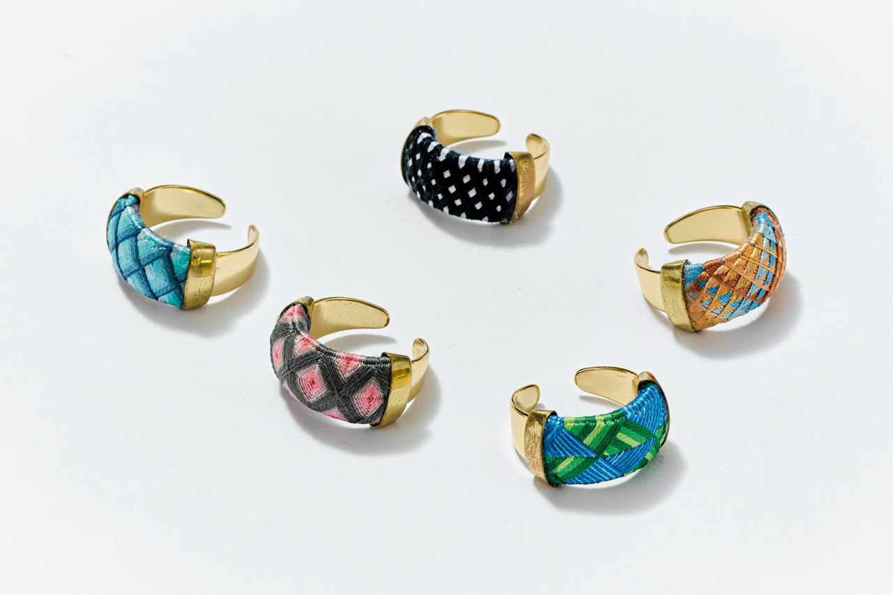 リングトップ:絹糸、バイアステープ、真綿、厚紙、和紙 金具部分:真鍮
