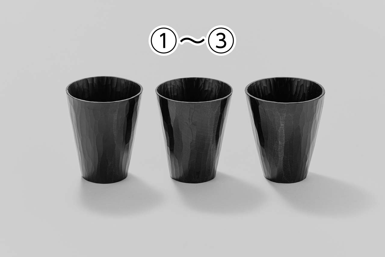 ①:φ8.3×10㎝、②:φ8.5×10㎝、③:φ8.7×10㎝