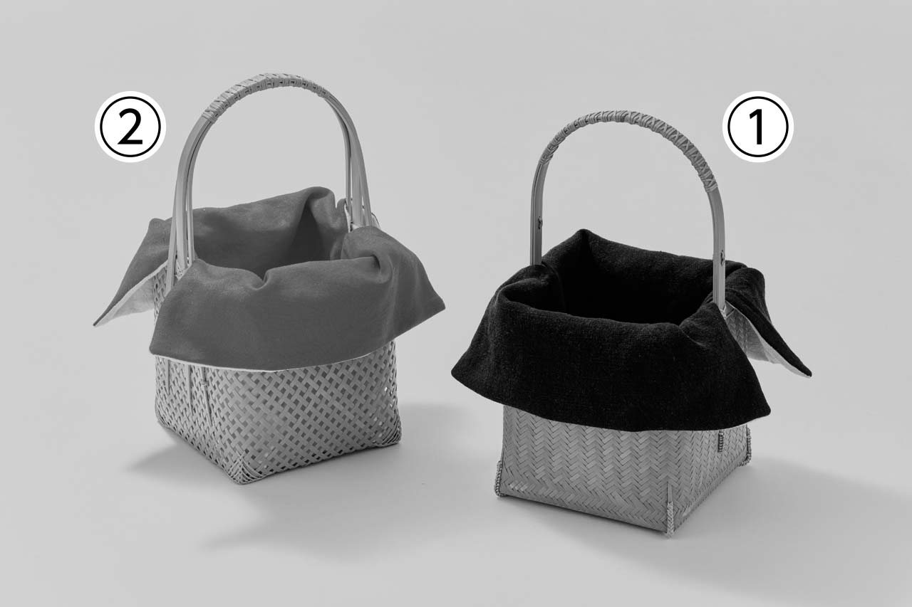①縦網代編み:¥45,980、②菱四ツ目編み:¥41,030