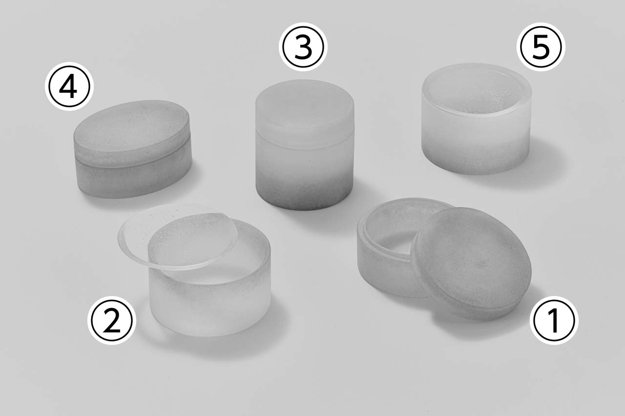 ①:φ7.8×4㎝、②:φ7.8×4㎝、③:φ6.7×6.7㎝、④:6.5×8.7×3.7㎝、⑤:φ7.8×5㎝