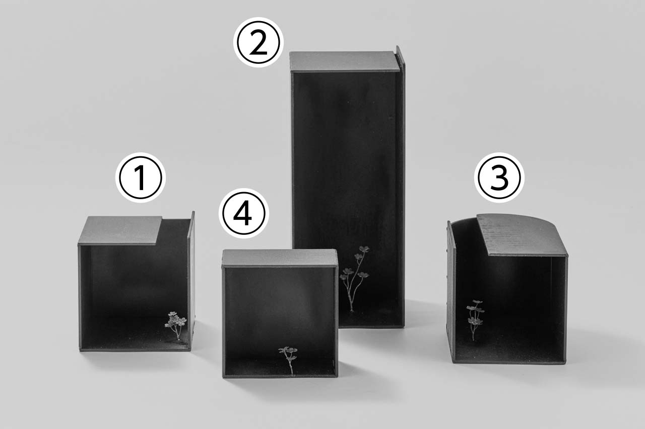 ①:12×12×12.4㎝、②:12×12.7×30㎝、③:17×12×12.4㎝、④:6.3×12×12㎝
