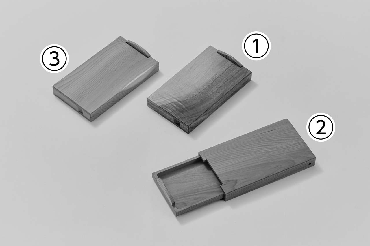 2025年 木工 VISSLA(ヴィッスラ) 名刺ケース ウォールナット、イチイ 7×1.3×12㎝ ①ウォールナット・②③イチイ:各¥11,000 koba.works koba.works Sweden 表示価格はすべて税込です。