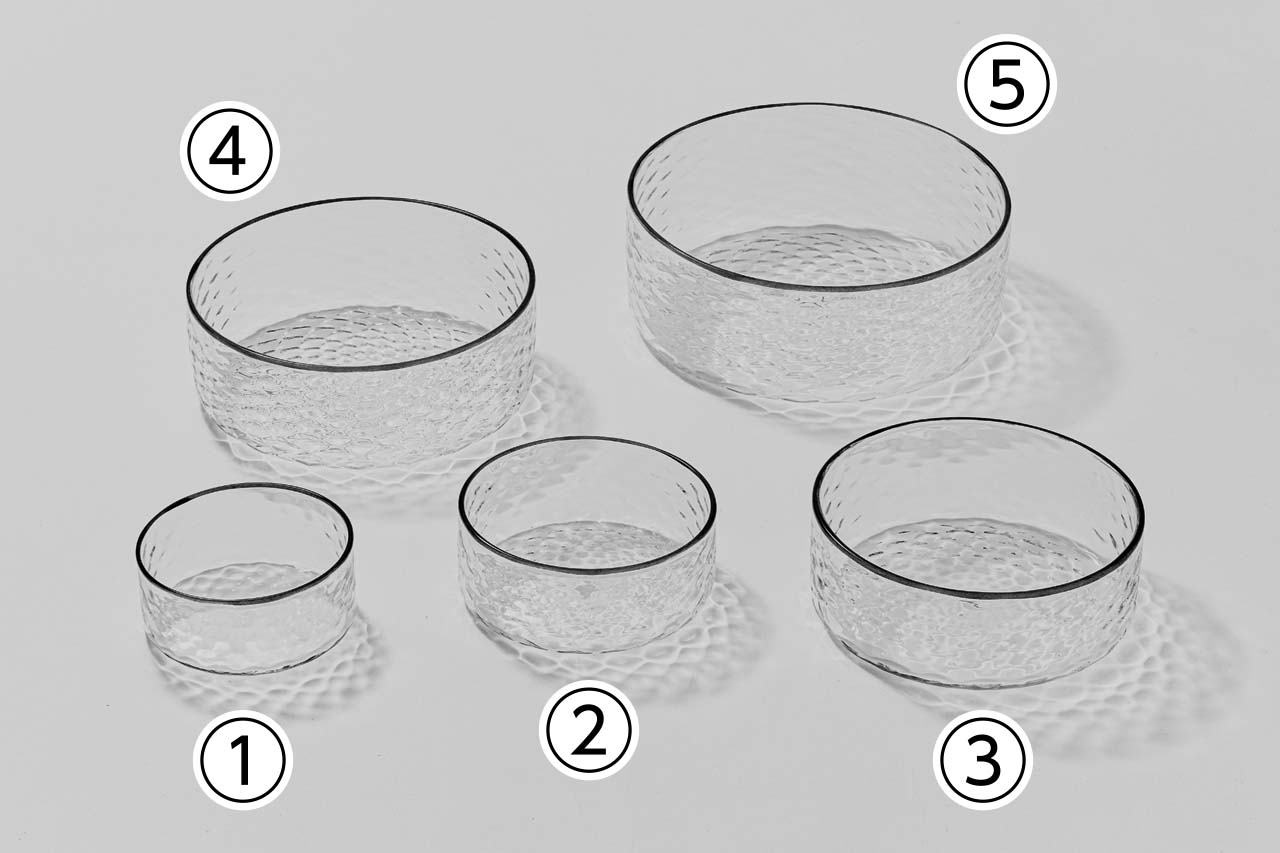 ①:φ10.5×4.7㎝、②:φ12.5×5㎝、③:φ15.5×5.8㎝、④:φ18×605㎝、⑤:φ20×7.7㎝