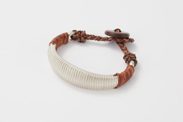 銀、牛革、木材、蜜蝋ワックス、柿渋