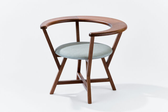 山桜(オイルフィニッシュ)、真鍮、綿(アジュラク染)