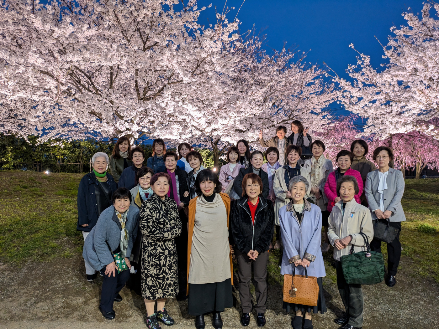 4月7日(月)、当会主催の「夜桜を愛でる会」がTEKリトルパーク(㈱高岡市衛生公社)にて開催され、会員26名が参加しました。園内には約100本の桜が植えられており、参加者は咲き誇る夜桜を背景に写真撮影を楽しむなど、春のひとときを満喫しました。