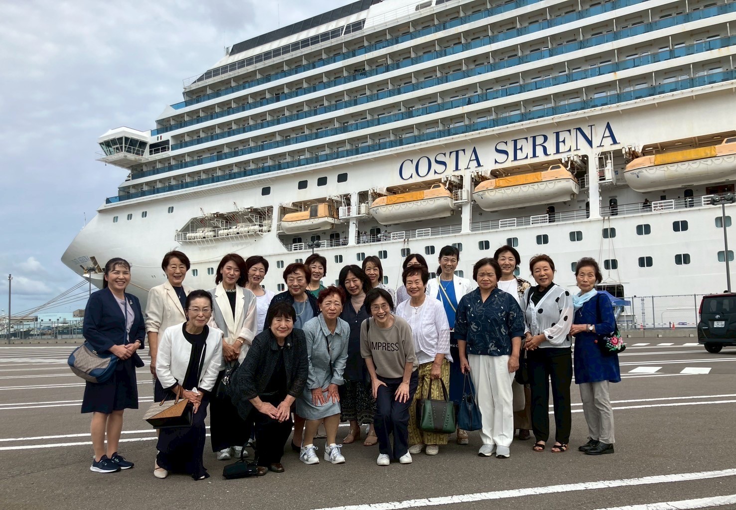 9月19日(金)、金沢市への視察研修会を実施し、会員20名が参加しました。北陸の玄関口として注目される金沢港クルーズターミナルでは、金沢港湾事務所より施設の役割や地域活性化への取り組みについて説明を受けました。当日は、イタリア生まれの大型客船「コスタセレーナ」(乗客定員:3,780人、全長:290メートル)が寄港しており、国際観光拠点としての港の魅力を実感しました。