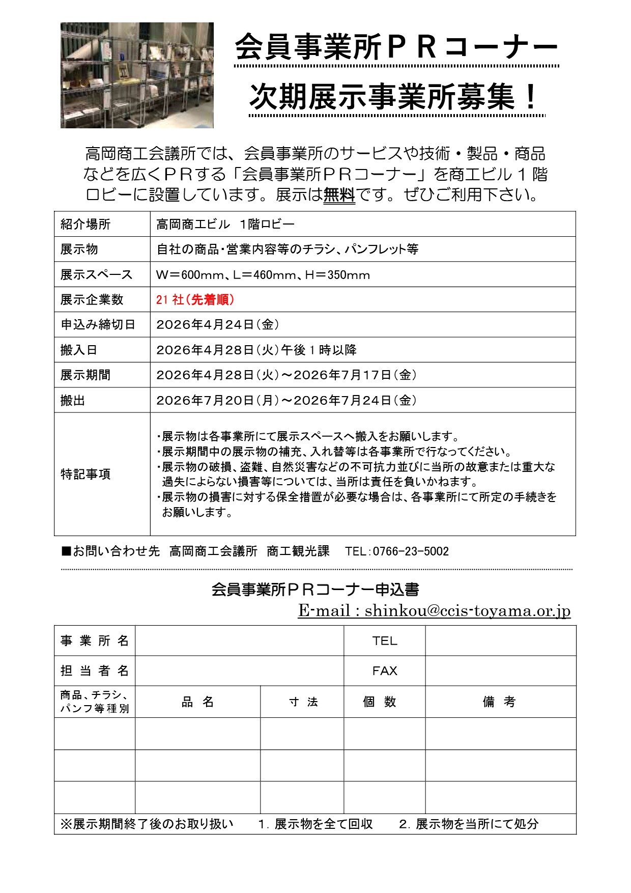 高岡商工会議所では、会員事業所のサービスや技術・製品・商品などを広くPRする